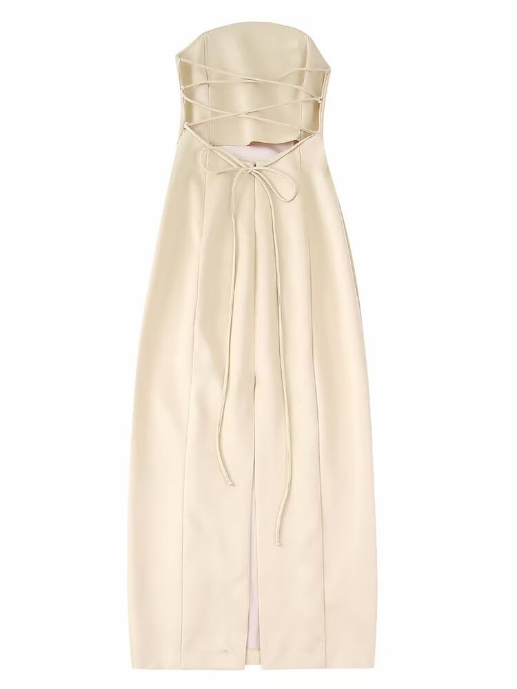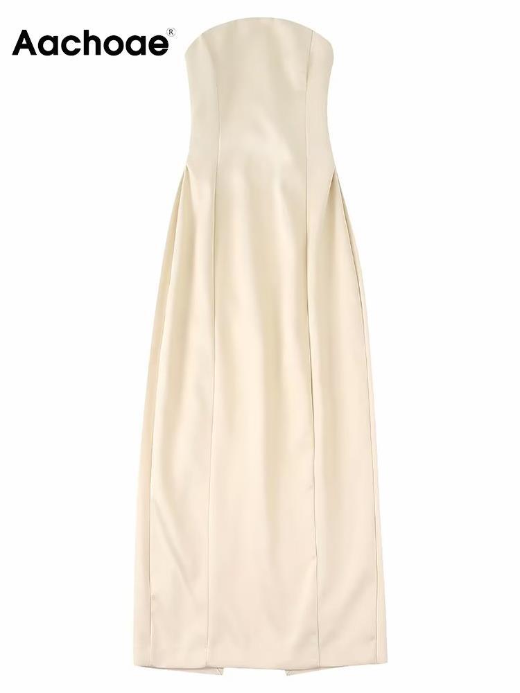 Aachoae 無地 A ライン ミディ ドレス女性ストラップレス ノースリーブ バックレス ドレス クラブ パーティー ドレス Aライン ソリッドカラー aac13124205049 | city&trip