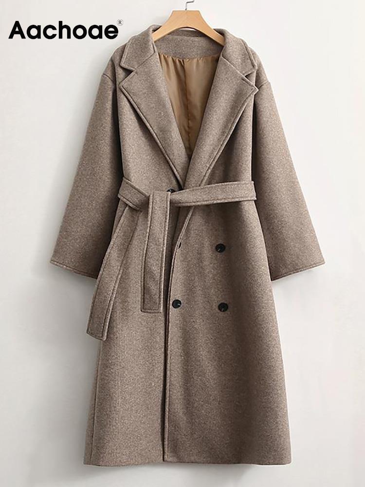 Aachoae レディース オフィス ロング ウールコート ベルト付き 長袖 ダブルブレストコート オーバーコート シックなアウター ハーネス 会社 学校 通勤や通学にも aac59661737478 | city&trip