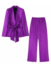 Aachoae レディース オフィス 2点セット ノッチドカラー 長袖 ブレザー スーツ ウエスト付き 無地 ワイドロングパンツ ソリッドカラー 会社 学校 通勤や通学にも aac60357154482 | city&trip