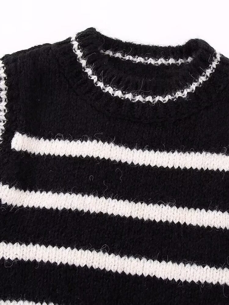 Aachoae レディース ストライプ プリント セーター ベスト ベーシック O ネック ノースリーブ プルオーバー トップス ニット セーター ジャンパー Oネック aac70874646026 | city&trip