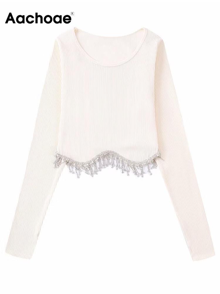 Aachoae レディース 無地 プルオーバー トップス Oネック 長袖 セーター シックなTelクロップドジャンパーセーター ロング ソリッドカラー aac82396377816 | city&trip