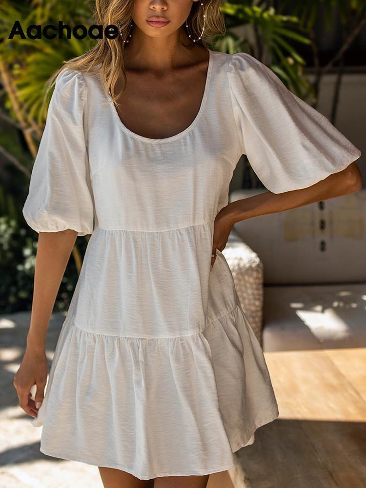 Aachoae 女性無地ミニドレスパフ半袖スクエアカラー A ラインドレス夏のパーティードレス ショート ハーフスリーブ サマー 夏物 Aライン ソリッドカラー スクウェア aac58300915897 | city&trip