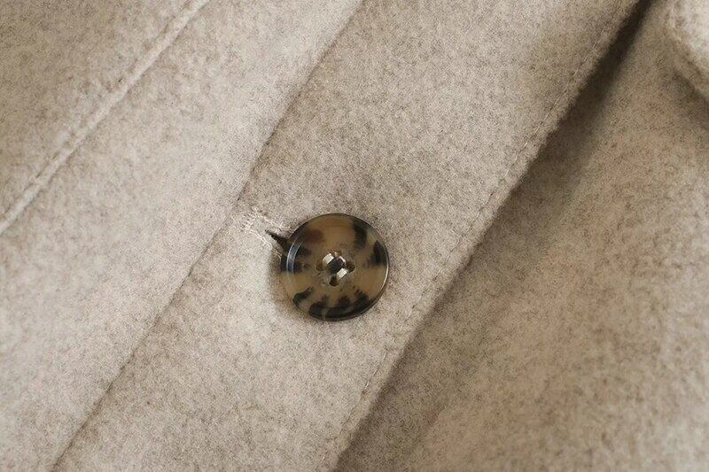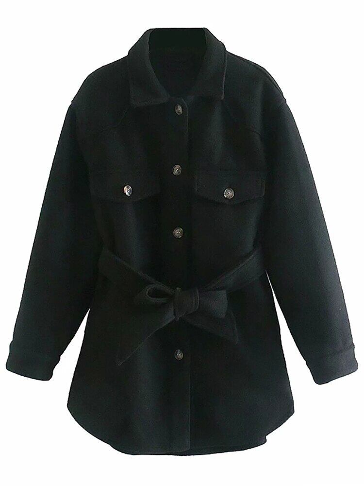 Aachoae 女性シックなウールコート付きベルト固体長袖ポケットシャツジャケットアウターウェアターンダウン襟コート ロング ハーネス ソリッドカラー aac74305103352