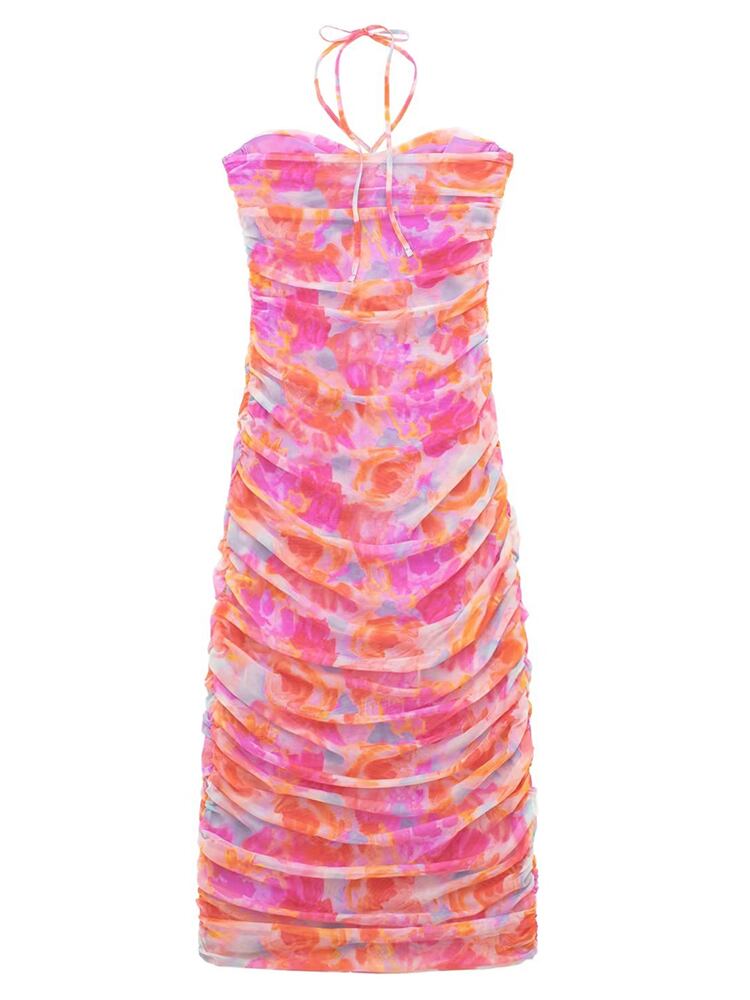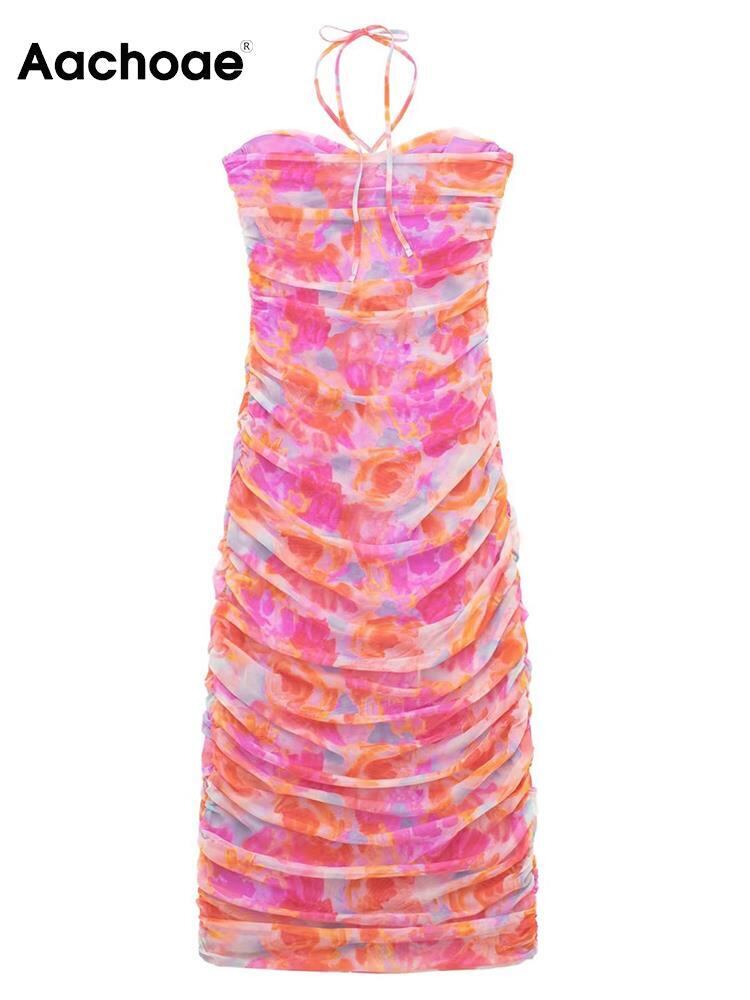 Aachoae 女性のセクシーな花柄プリントミニドレスノースリーブバックレスプリーツ A ラインドレス夏のパーティードレス サマー 夏物 Aライン aac38605683469 | city&trip