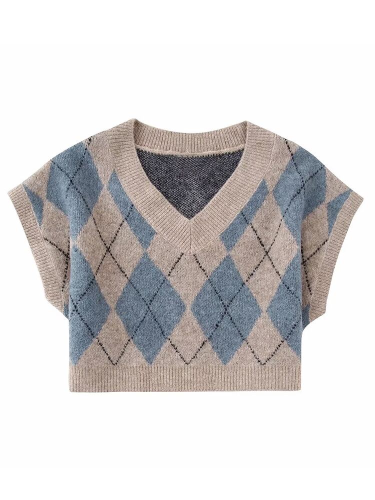 Aachoae レディース アーガイル プリント セーター トップス ベスト ベーシック Vネック クロップド トップス ベーシック ニット プルオーバー ジャンパー aac98015429696 | city&trip
