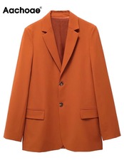 Aachoae 女性オフィスセット無地シングルブレスト長袖ブレザースーツウエストロングパンツ春 スプリング 春物 ソリッドカラー 会社 学校 通勤や通学にも aac65102485998 | city&trip