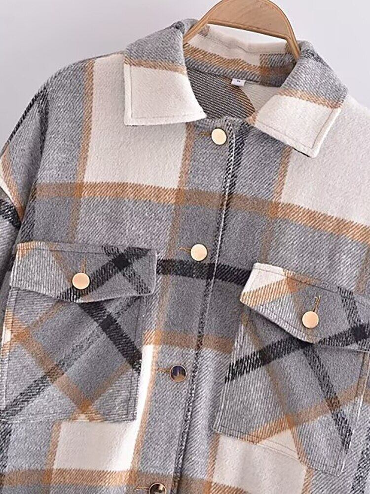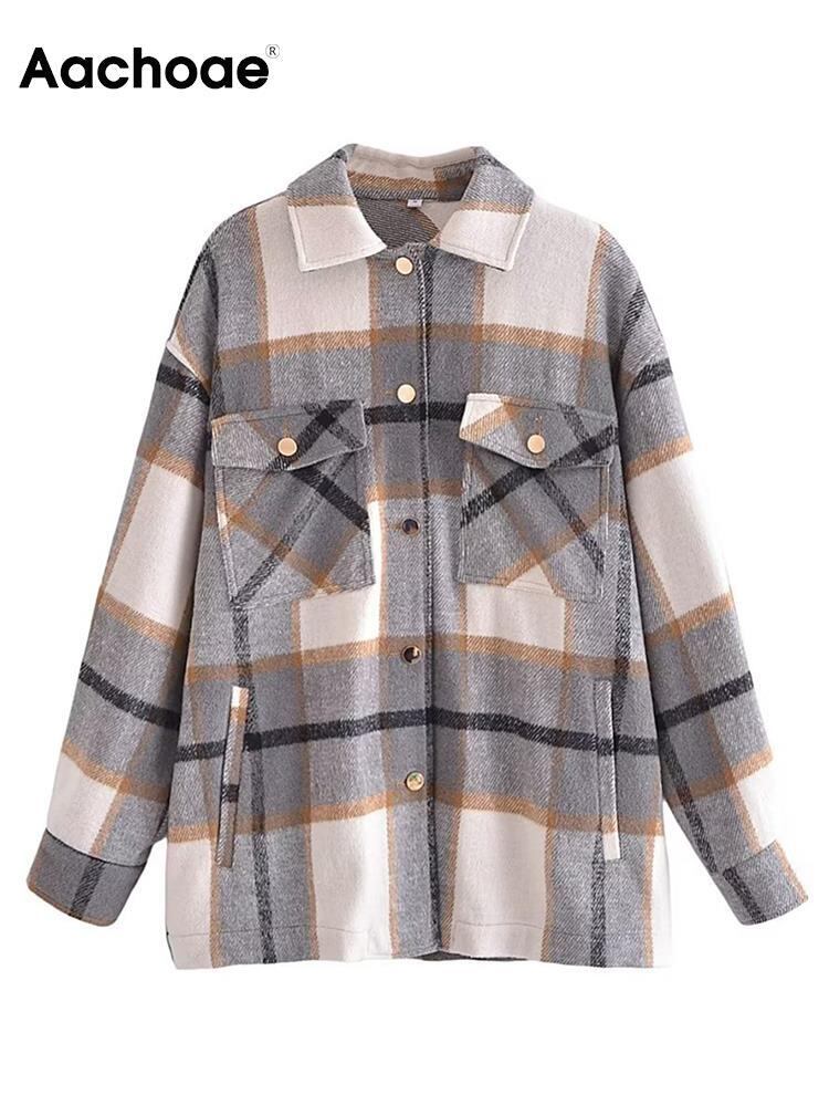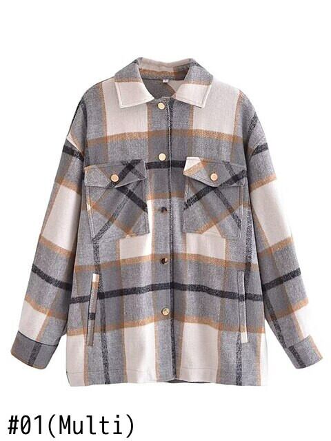 Aachoae レディース チェック柄 プリント ジャケット コート ターンダウン カラー 長袖 ジャケット シングル ブレスト アウター ロング aac59353993452 | city&trip