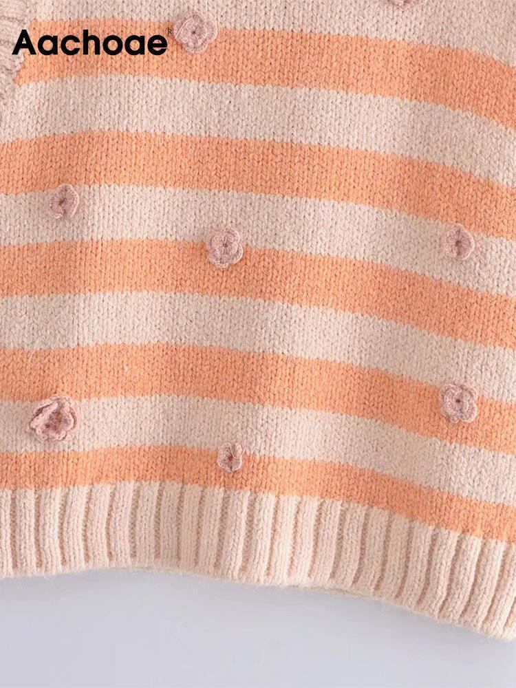 Aachoae レディース ストライプ プリント セーター ベスト O ネック 花飾り ノースリーブ セーター プルオーバー トップス 花柄 Oネック aac83577613683 | city&trip