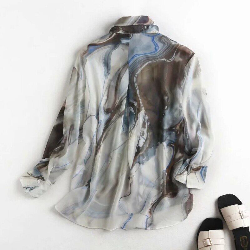 Aachoae レディース プリント 長袖 ブラウス トップス シック ターンダウンカラー ルーズシャツ オフィスウェア チュニック ロング 会社 学校 通勤や通学にも aac58682531777 | city&trip