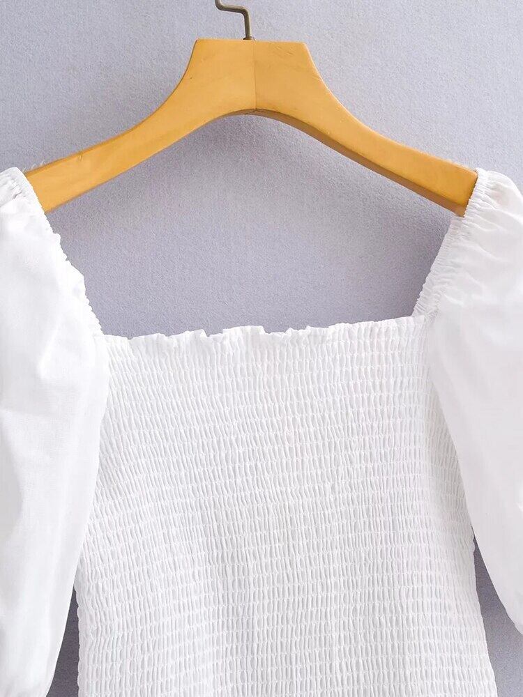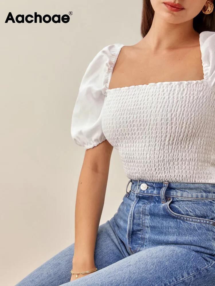 Aachoae レディース 無地 ブラウス シャツ スクエアカラー パフ 半袖ブラウス ホワイト トップス 夏 ショート ハーフスリーブ サマー 夏物 ソリッドカラー スクウェア aac44886442252 | city&trip