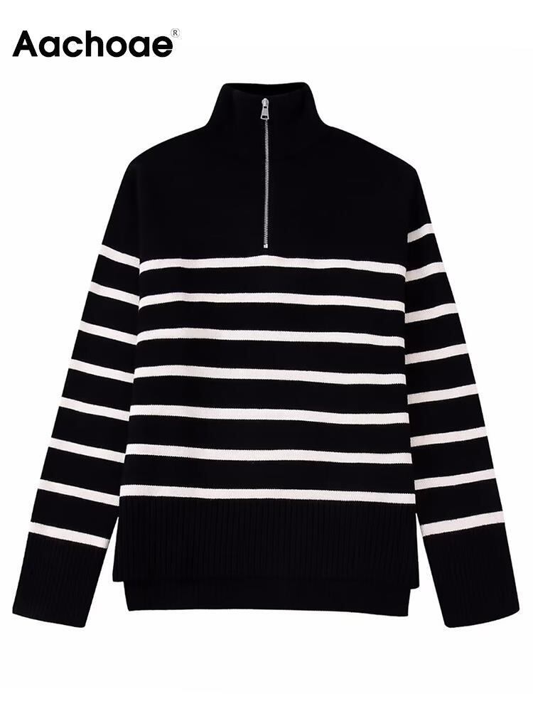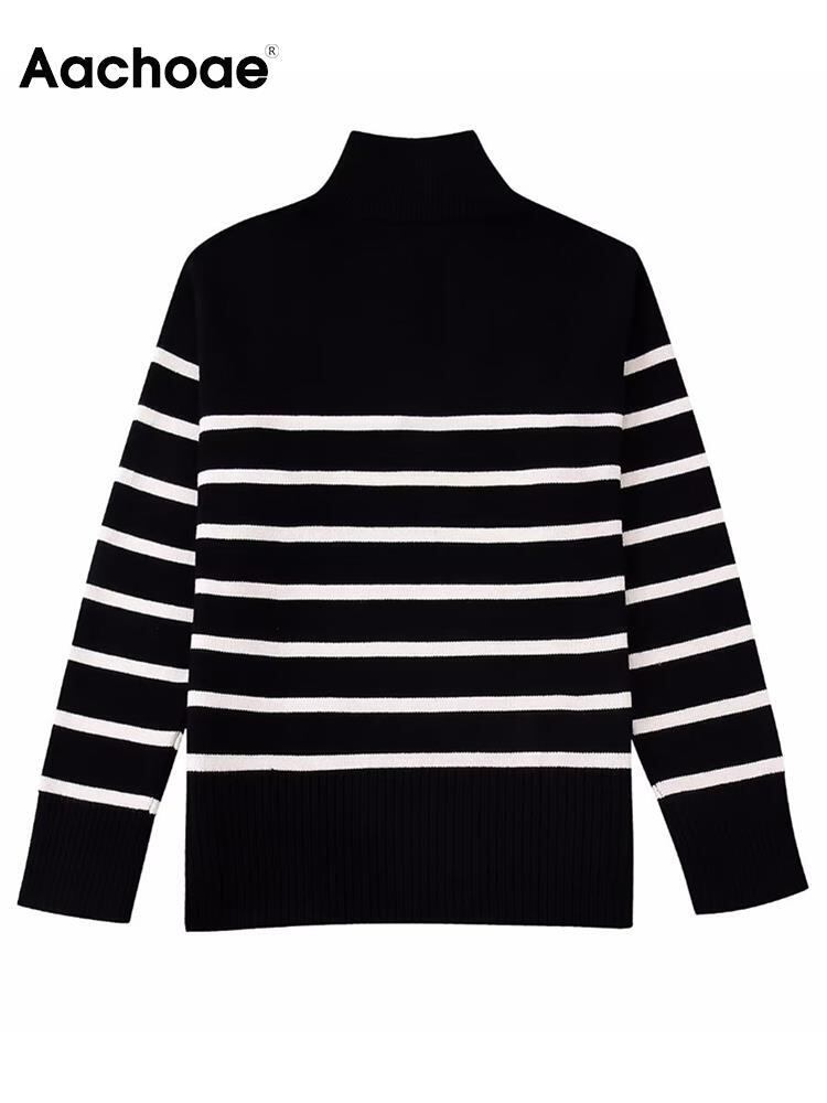 Aachoae レディース ストライプ プリント セーター ターテネック 長袖 ジャンパー セーター 暖かい ルーズ プルオーバー トップス ロング aac4798315923 | city&trip