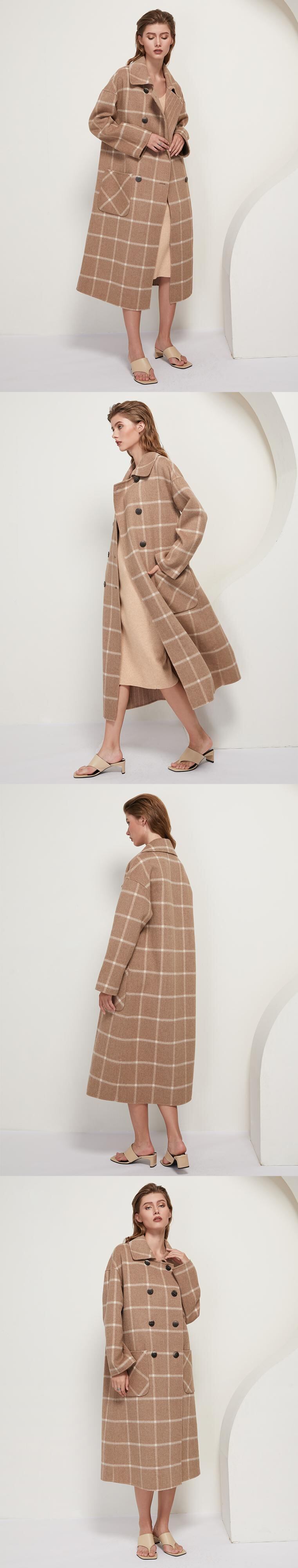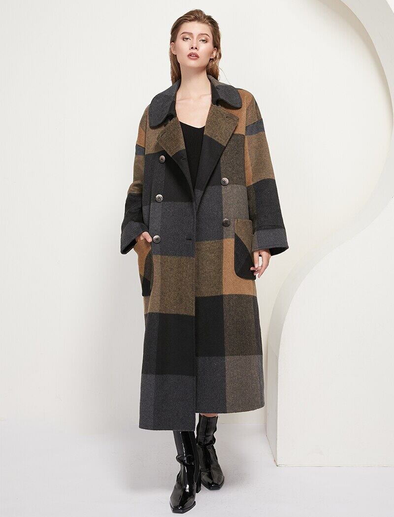 Aachoae レディース チェック柄ウール ロングコート ポケット付き ダブルブレスト オーバーコート バットウィング ロングスリーブ ウールコート 長袖 aac54873834119 | city&trip