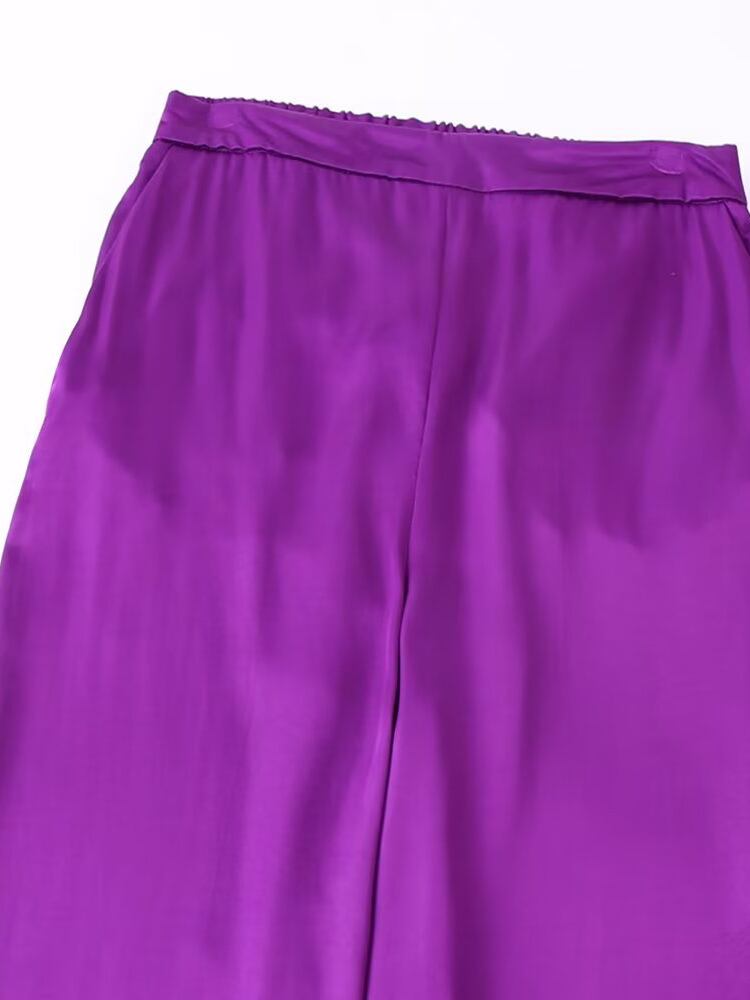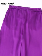 Aachoae 女性無地ワイドレッグパンツウエストルーズ長ズボン弾性ウエストパンツ Vestidos ロング エラスティック 伸縮 ワイドパンツ ソリッドカラー aac15238380064 | city&trip