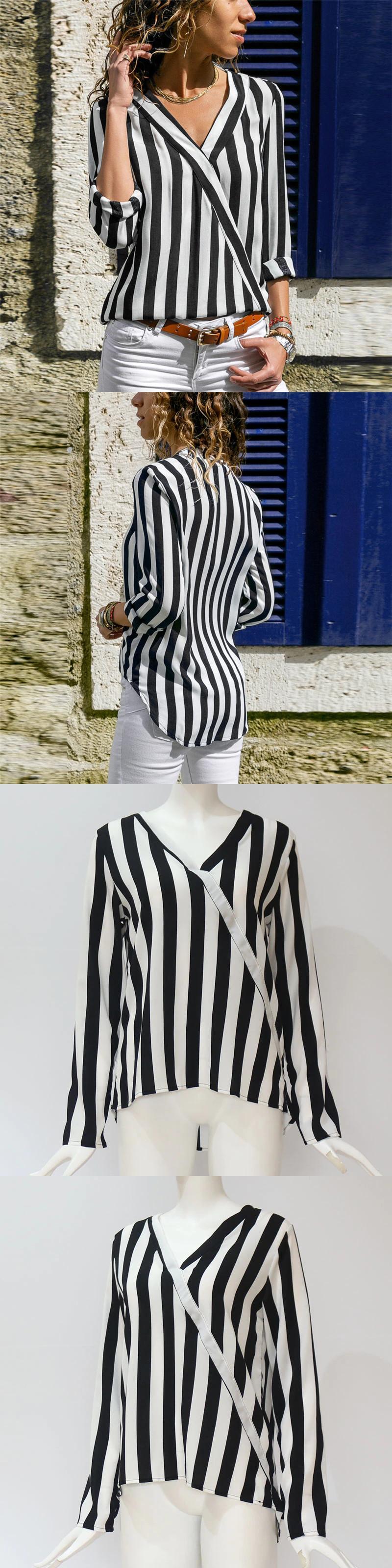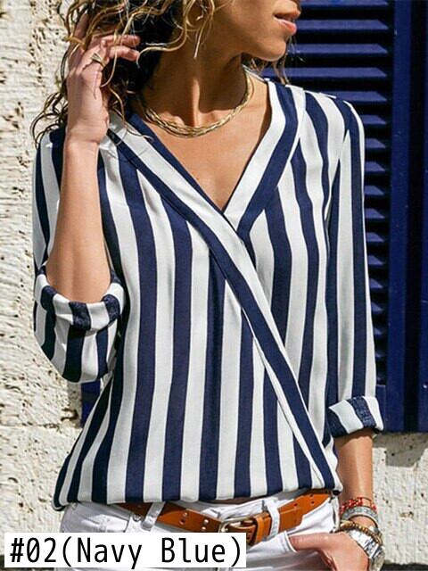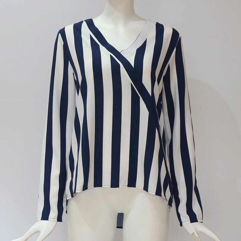 Aachoae レディース ストライプ ブラウス シャツ 長袖 Vネック シャツ トップス ブラウス et Chemisier de Moda ロング aac71214094622 | city&trip