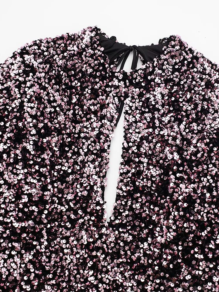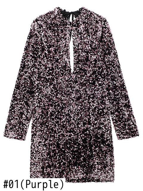 Aachoae 女性無地スリムミニドレス O ネック長袖スパンコール A ラインドレスクラブパーティードレス ロング Oネック Aライン ソリッドカラー aac75208884146 | city&trip
