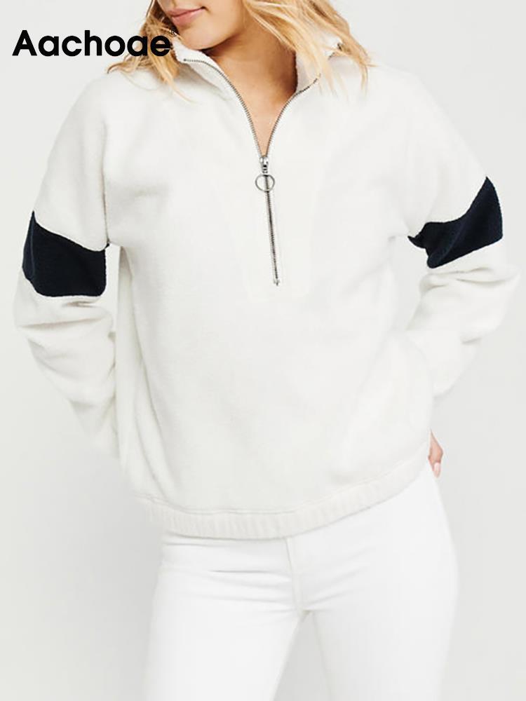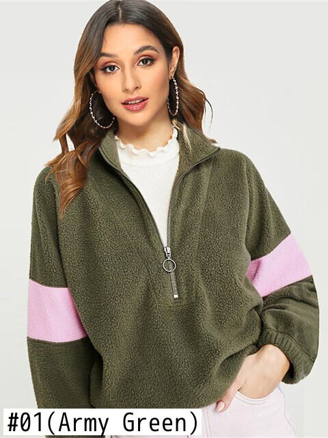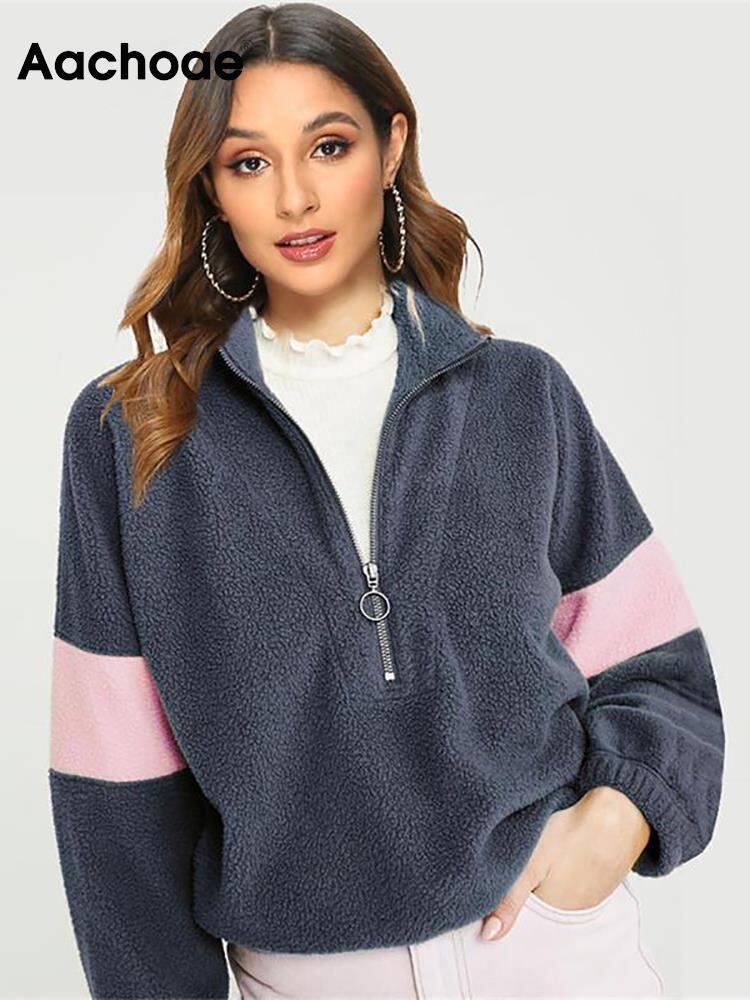 Aachoae パッチワーク フリース スウェット秋冬暖かいパーカー女性長袖ジッパー テディ パーカー ルーズ トップ ロング シャツ オータム 秋物 ウィンター 冬物 aac41027735834 | city&trip
