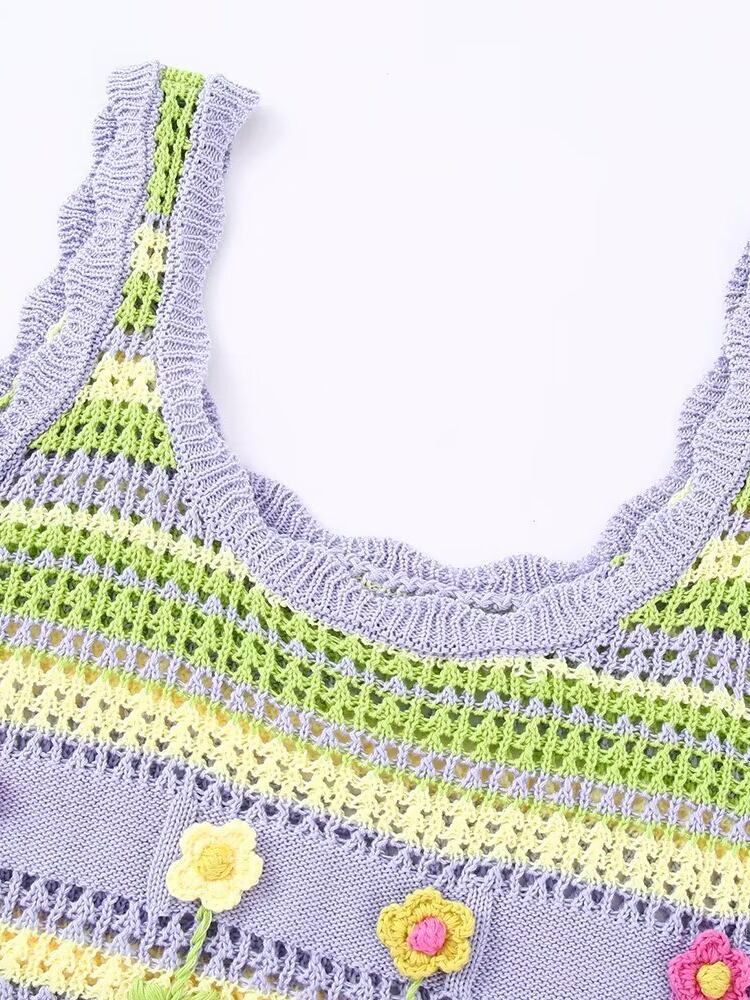 Aachoae 女性スウィートフローラル刺繍ニットタンクトップノースリーブ中空アウトクロップドトップス夏タンク 大人ガーリー キュート カジュアル サマー 夏物 花柄 aac20120526790 | city&trip