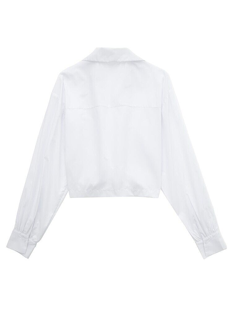 Aachoae レディース 無地 ブラウス シャツ ターンダウンカラー 長袖シャツ トップス ホワイト クロップドトップス ロング ソリッドカラー aac36292188181 | city&trip