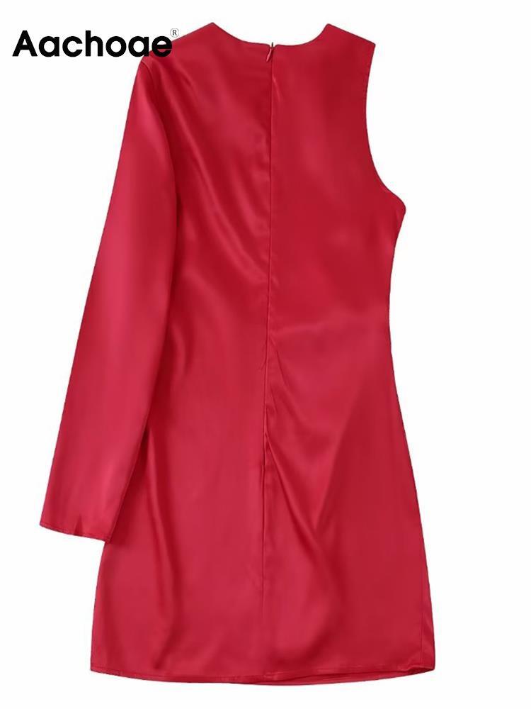 Aachoae レディース 無地 ミニドレス ベーシック Oネック ワンショルダー 長袖 プリーツ Aラインドレス ワンピース ロング ソリッドカラー aac14127967199 | city&trip