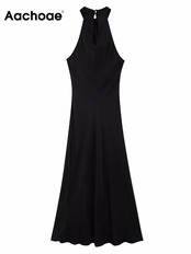 Aachoae 女性無地ビーズ ロング ドレス ホルター ノースリーブ A ライン ドレス レディー ディナー パーティー ドレス Vestido Aライン ソリッドカラー aac91966234989 | city&trip