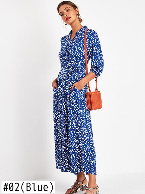 Aachoae レディース ターンダウンカラー オフィスシャツドレス ドットプリント ロングドレス 七分袖サッシュドレス 会社 学校 通勤や通学にも aac53699837969 | city&trip