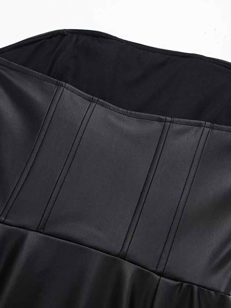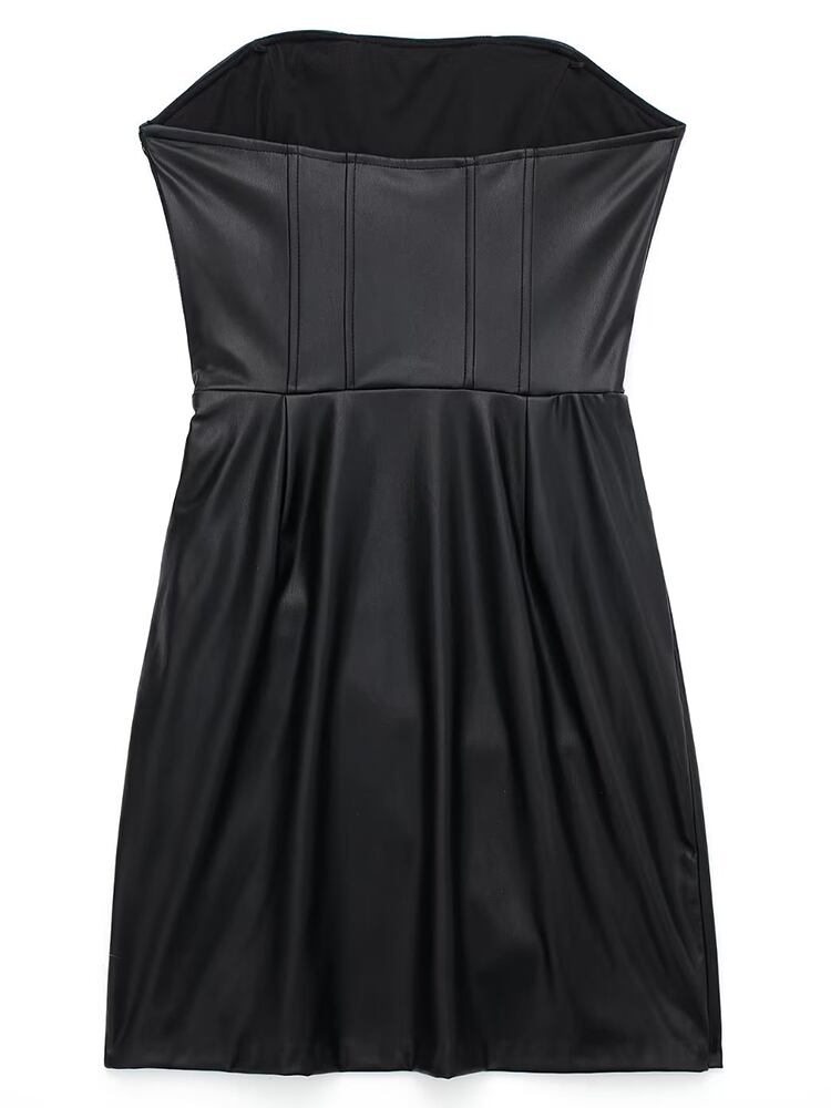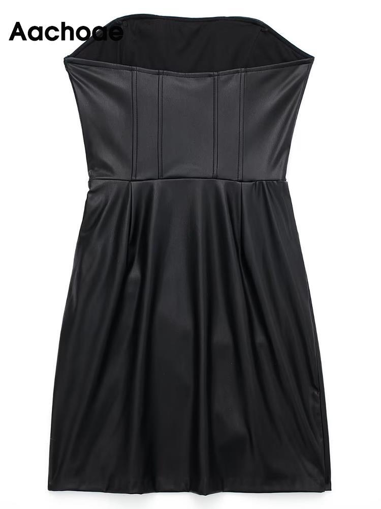 Aachoae レディース PU フェイクレザー ミニドレス セクシー ノースリーブ バックレス プリーツ Aライン ドレス スリム パーティードレス ファー aac57679792803 | city&trip