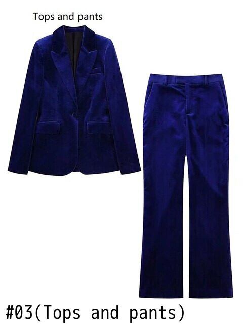Aachoae 女性オフィス 2 点セット無地ロングスリーブシングルボタン Velevt ブレザースーツとウエストロングパンツ 長袖 ソリッドカラー 会社 学校 通勤や通学にも aac15061738274 | city&trip