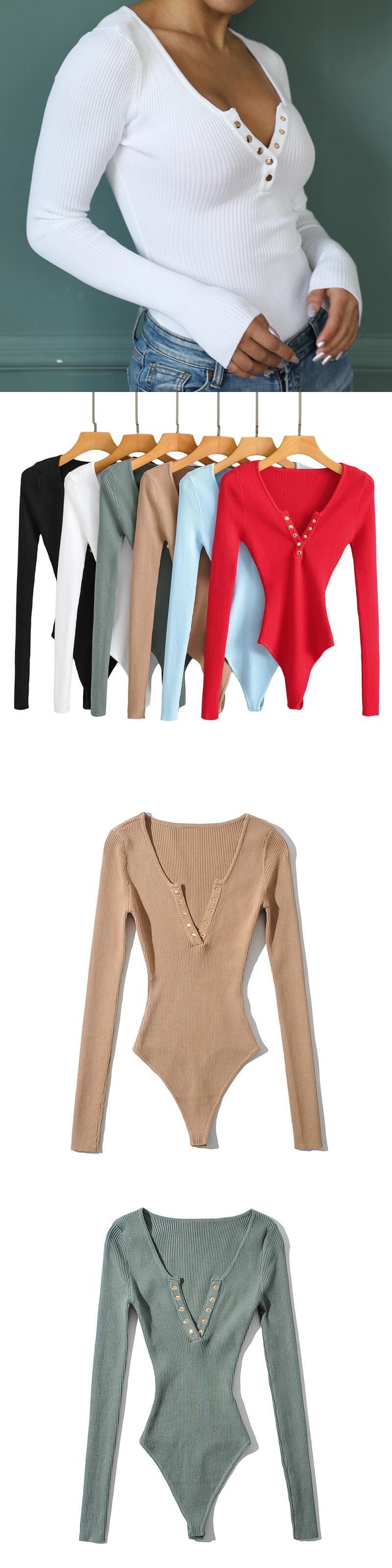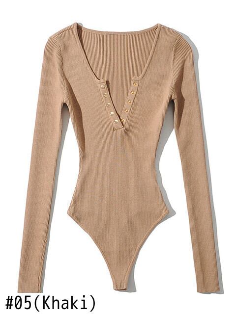 Aachoae ソリッドニットボディコンボディスーツ女性長袖ホームジャンプスーツ女性シースセクシーなボディスーツ春 Combinaison ロング スプリング 春物 ソリッドカラー aac16307815857 | city&trip