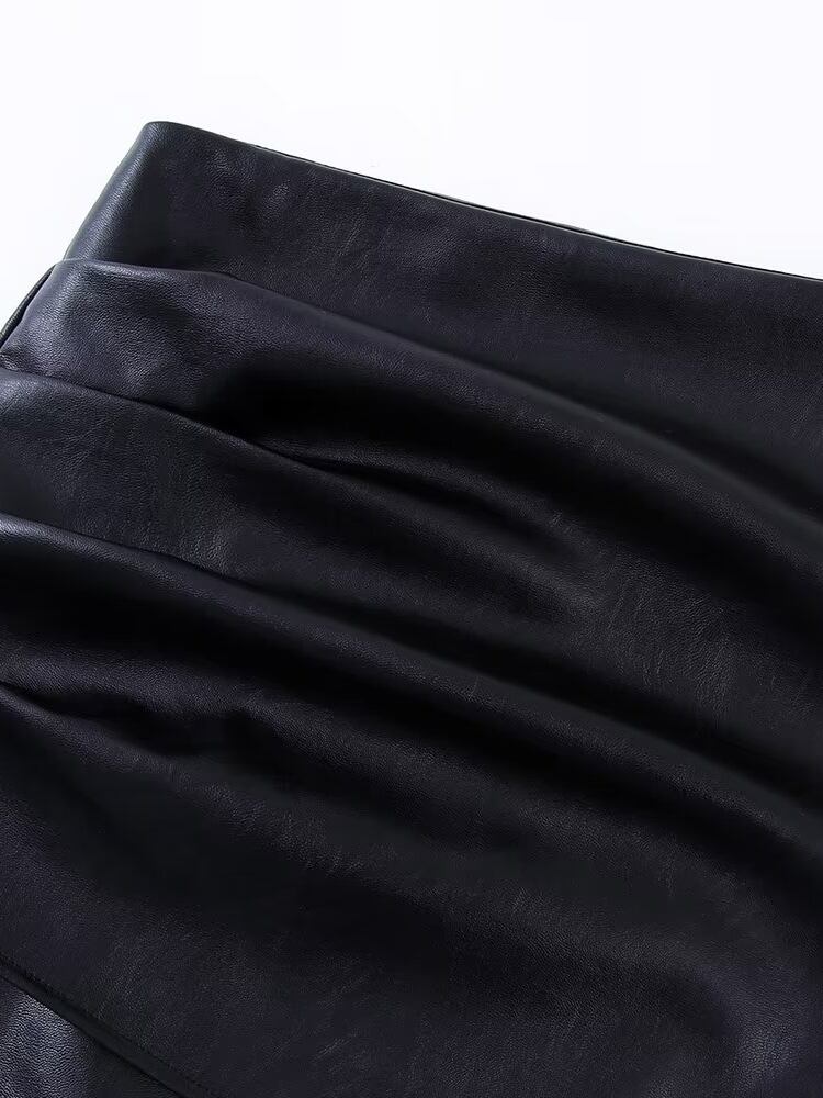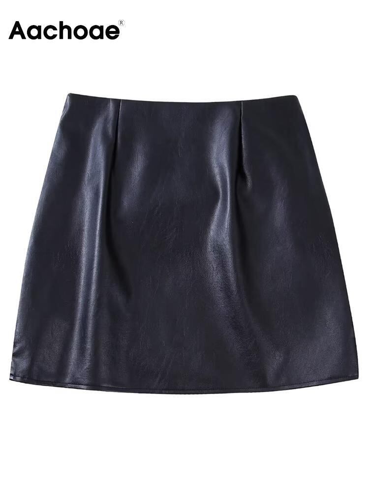Aachoae レディース PU フェイクレザー ミニスカート ウエスト フロント プリーツ Aライン スカート スリム 無地 スカート ファー ソリッドカラー aac19828196448 | city&trip