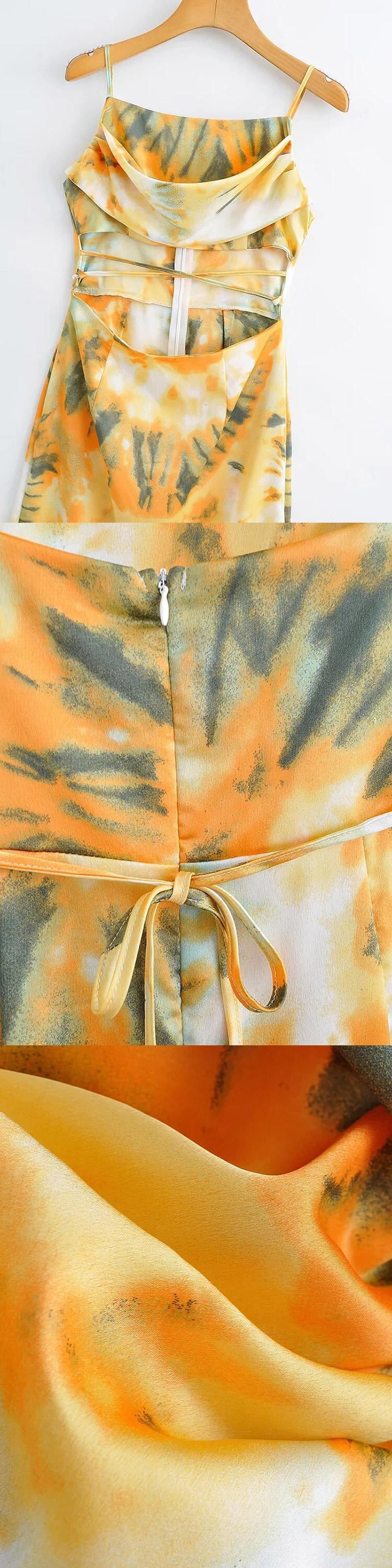 Aachoae ビーチプリントサイドスプリットミディドレス女性の夏のスパゲッティストラップ中空アウトドレス背中の開いた A ラインドレス サマー 夏物 Aライン aac94262188914 | city&trip