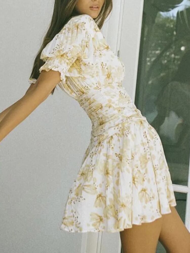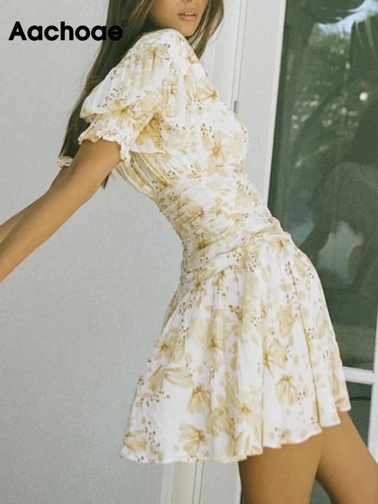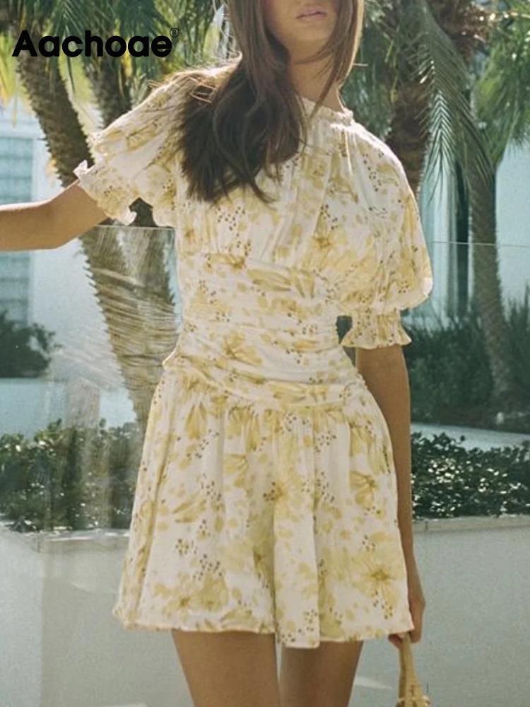 Aachoae 夏花柄プリントミニドレス女性 O ネックバタフライ半袖ドレススリム A ラインドレス ショート ハーフスリーブ サマー 夏物 Oネック Aライン aac42676867434 | city&trip