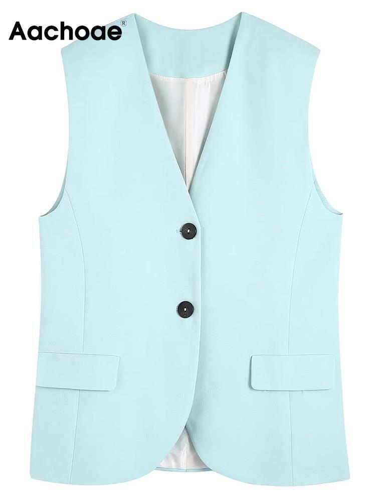 Aachoae 女性無地ウエストコート V ネックシングルブレスト Outerwears オフィスウェアコート付きポケット Vネック ソリッドカラー 会社 学校 通勤や通学にも aac96440842887 | city&trip