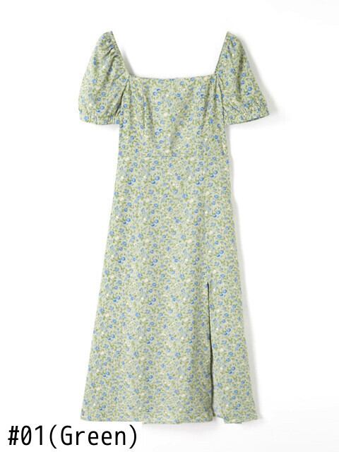 Aachoae シックな花柄スプリット ドレス女性 A ライン ドレス夏半袖スクエア カラー ドレス ショート ハーフスリーブ サマー 夏物 Aライン スクウェア aac94090313103 | city&trip