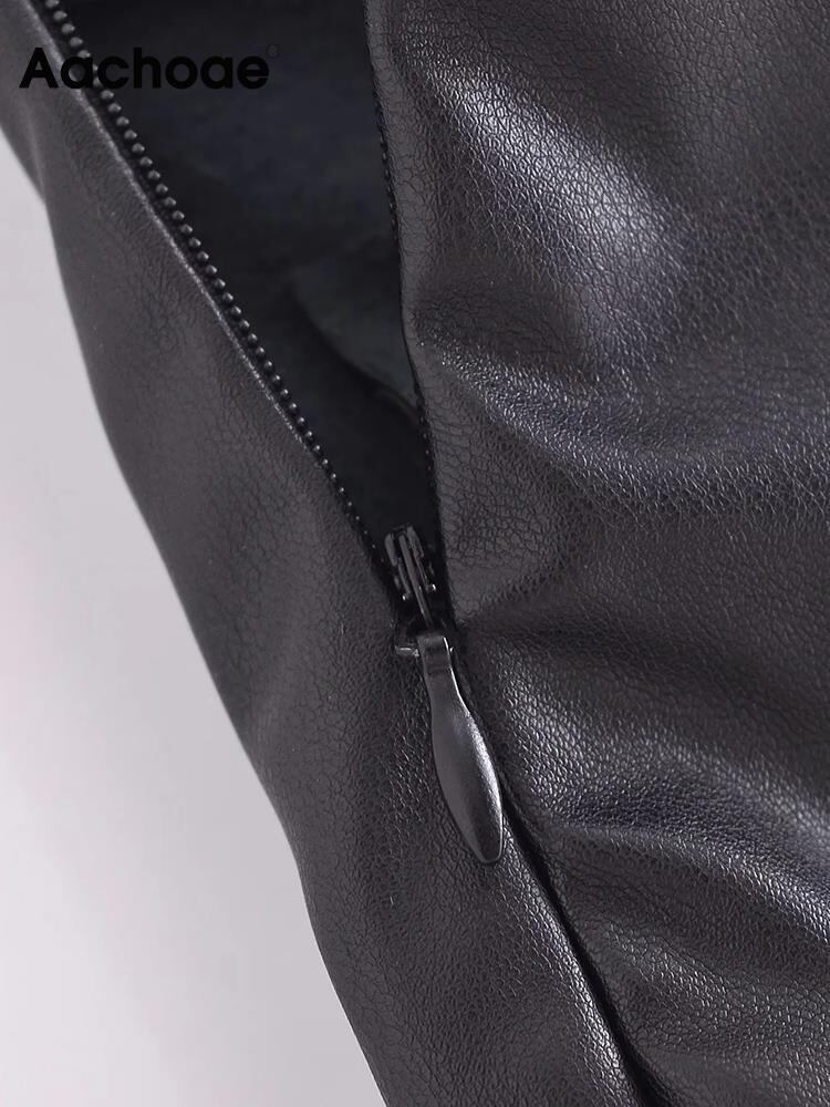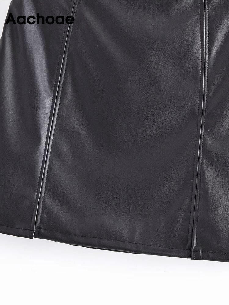Aachoae 夏の女性無地ミニスカートウエストサイドジッパーフライスカート Ladie フェイクレザー PU A ラインスカート サマー 夏物 ファー Aライン ソリッドカラー aac42819348098 | city&trip
