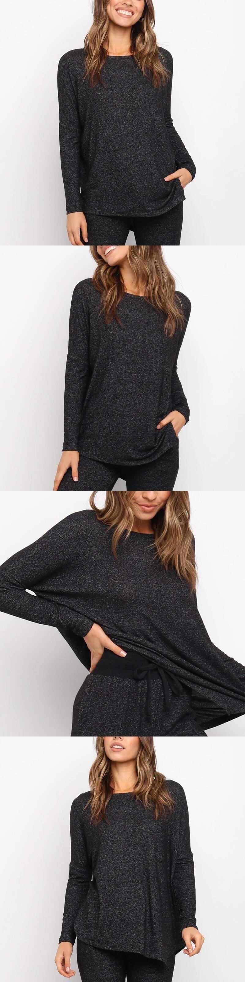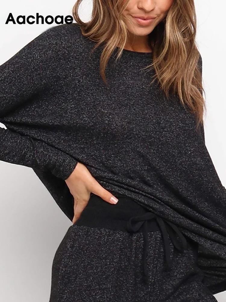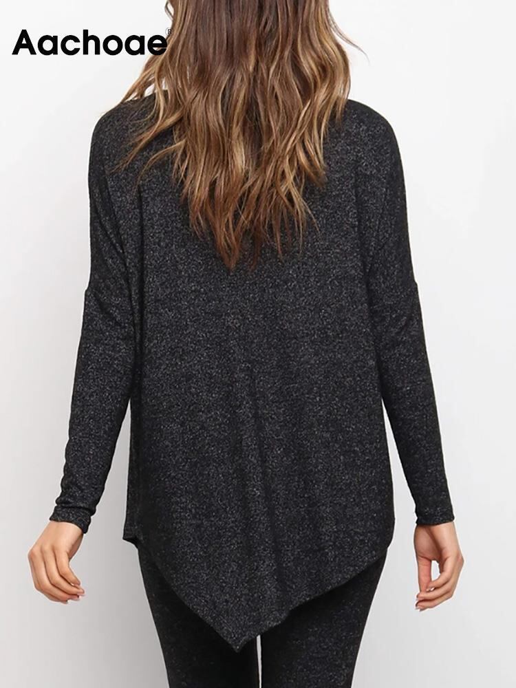 Aachoae O ネック プルオーバー セーター女性無地バットウィング長袖ジャンパー不規則な裾ルーズ トップス ロング Oネック ソリッドカラー aac23810420368