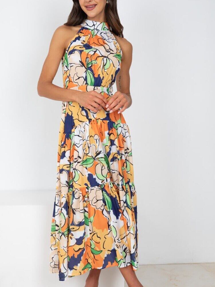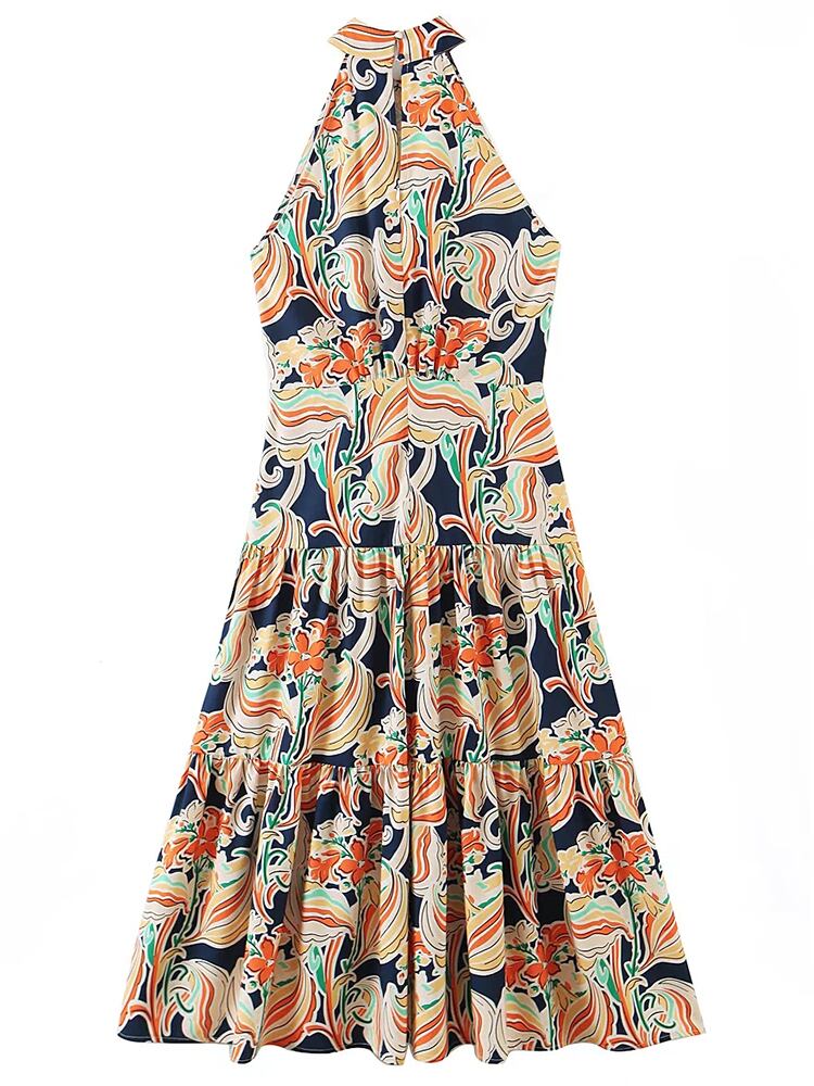 Aachoae 女性自由奔放に生きるスタイル花柄プリントミディドレスノースリーブ A ラインドレス夏のビーチパーティードレス Vestidos サマー 夏物 Aライン aac10583763256 | city&trip