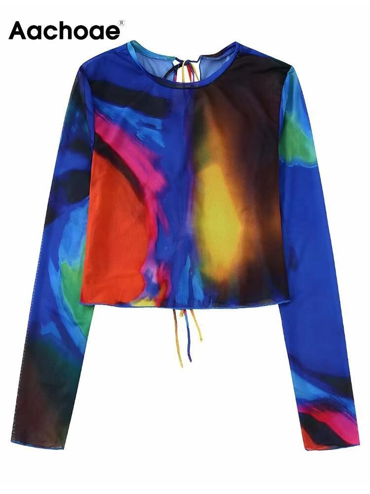 Aachoae レディース シック タイダイ プリント ブラウス シャツ ベーシック Oネック 長袖 ブラウス トップス バック レースアップ ロング aac58336789323 | city&trip