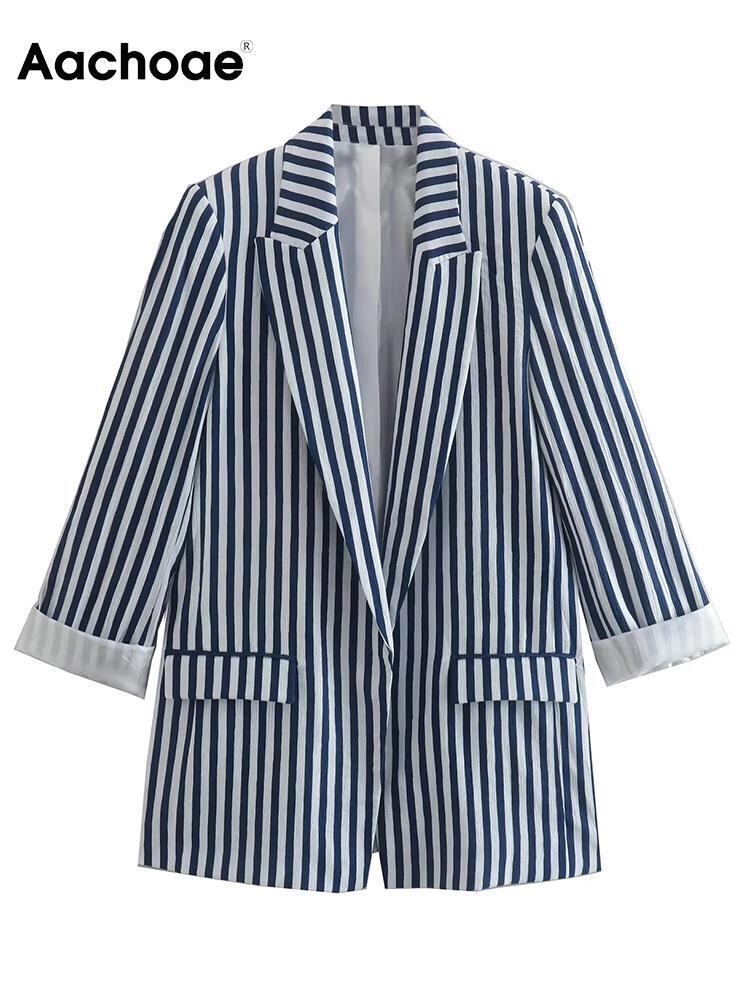 Aachoae ストライプ プリント ブレザー スーツ女性ノッチ付き襟長袖ジャケット コート オフィスウェア上着トップス ロング 会社 学校 通勤や通学にも aac33195814760 | city&trip