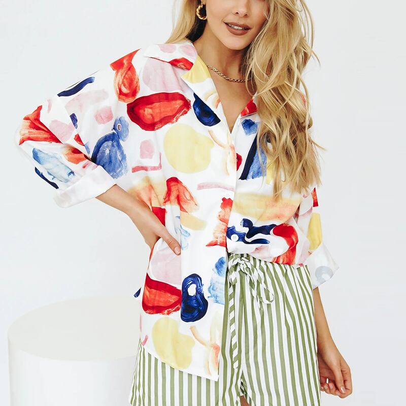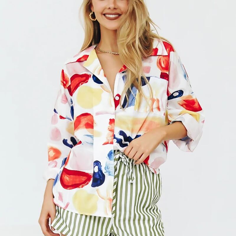 Aachoae レディース プリント ブラウス シャツ ポケット付き 長袖 ノッチド カラー シャツ トップス ルーズ トップス 秋 ロング オータム 秋物 aac30360209609 | city&trip