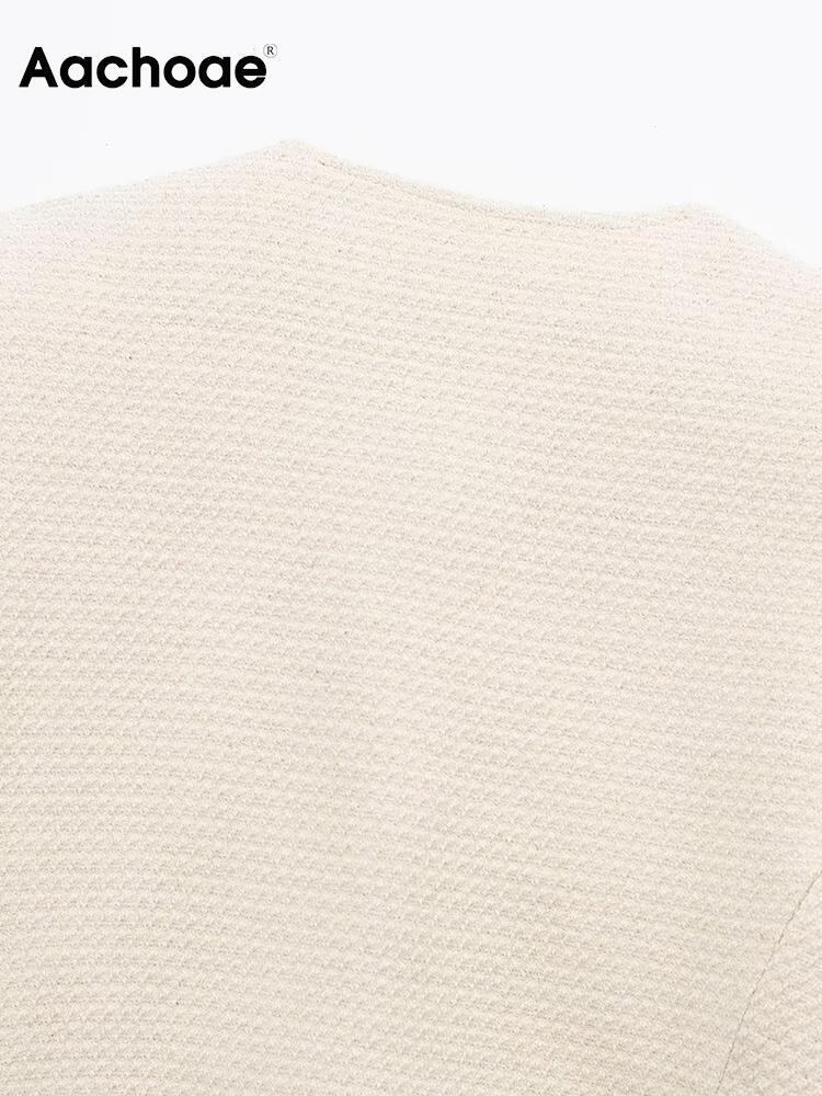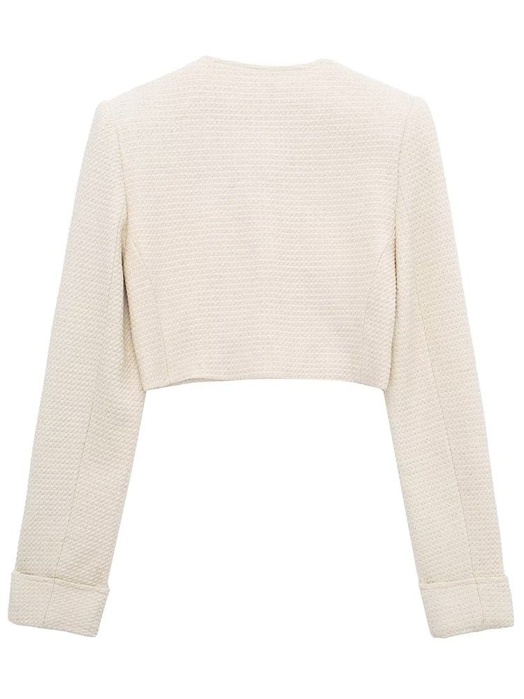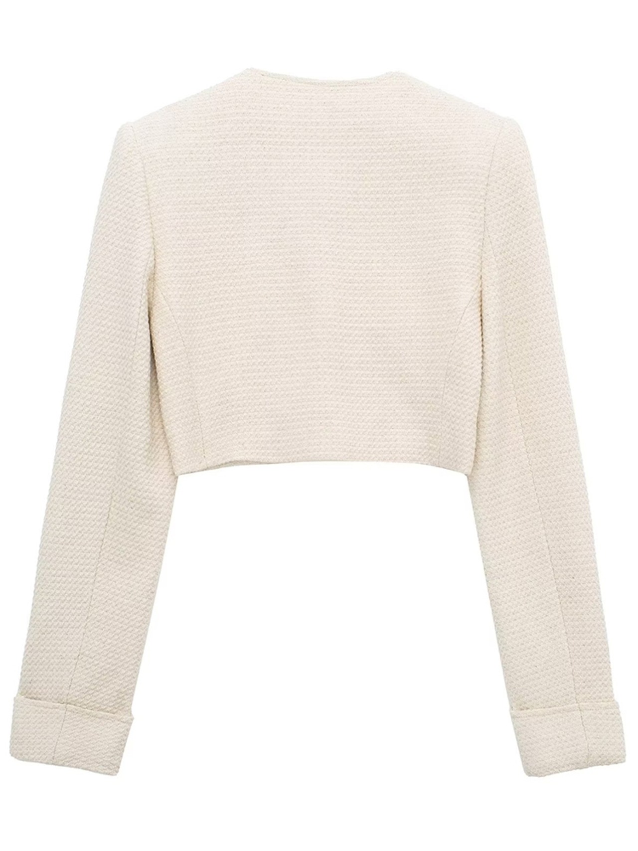 Aachoae 無地アウタートップス女性の基本的な O ネック長袖クロップドジャケットシングルブレストツイードコート ロング Oネック ソリッドカラー aac64299700041 | city&trip