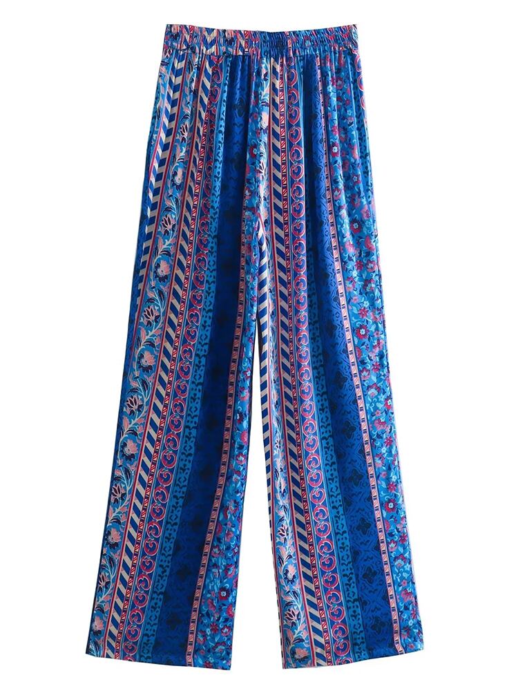 Aachoae レディース 花柄プリント ワイドレッグパンツ ウエストゴム 長ズボン おしゃれ 長ズボン パンタロン ロング エラスティック 伸縮 ワイドパンツ aac8908903816 | city&trip