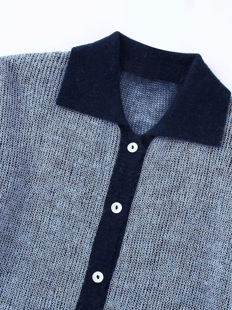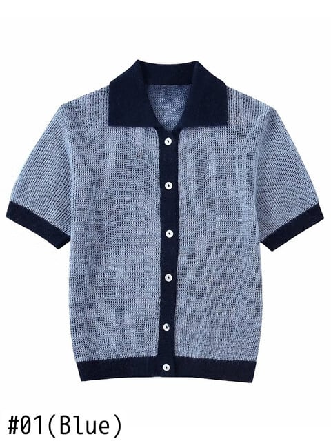 Aachoae レディース パッチワーク プルオーバー トップス ターンダウン カラー 半袖 トップス ボタン ニットセーター ショート ハーフスリーブ aac40255714532