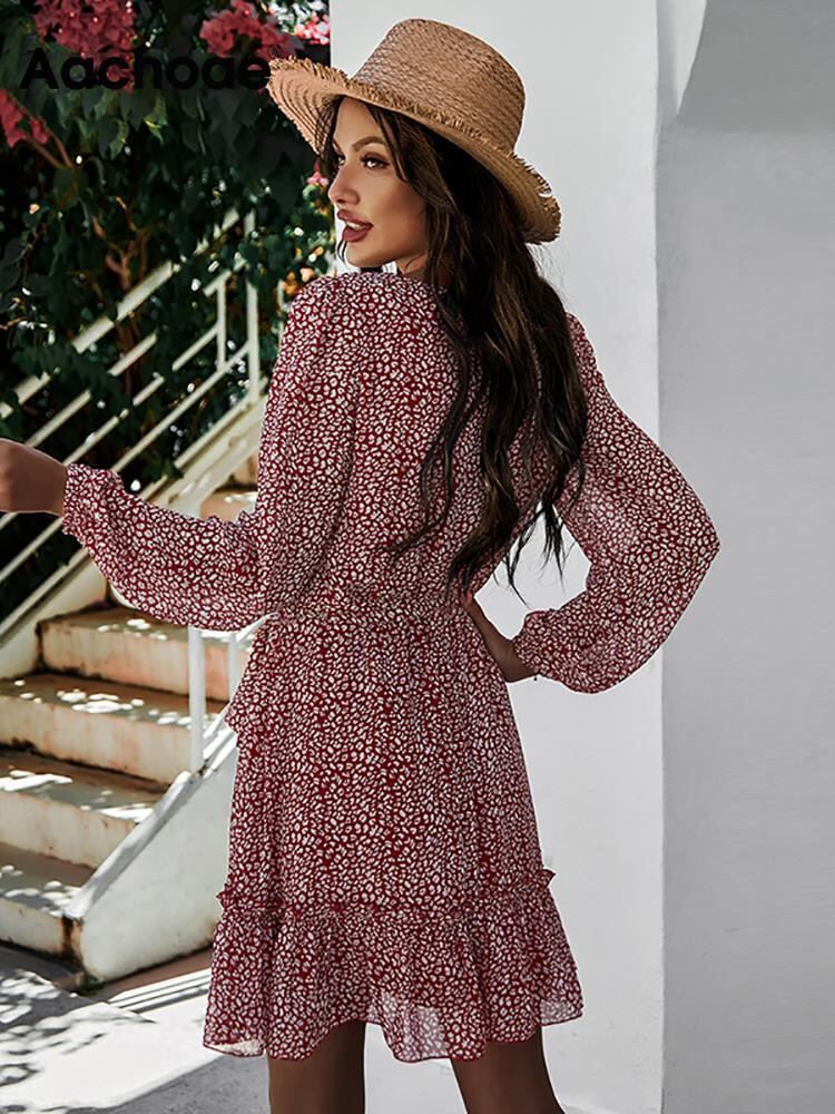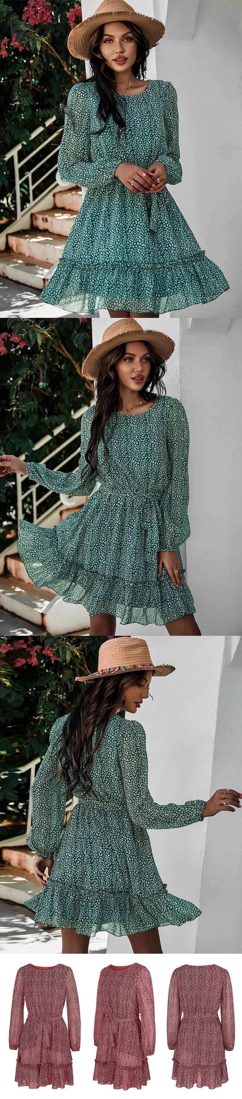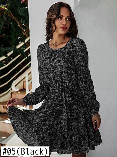 Aachoae 夏プリントミニドレス女性 O ネック A ラインフリル自由奔放に生きるビーチドレス長袖サッシドレス ロング ラッフル サマー 夏物 Oネック Aライン aac3775604790 | city&trip