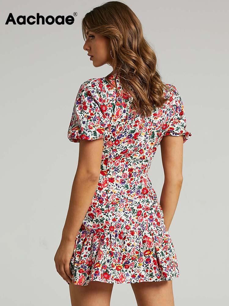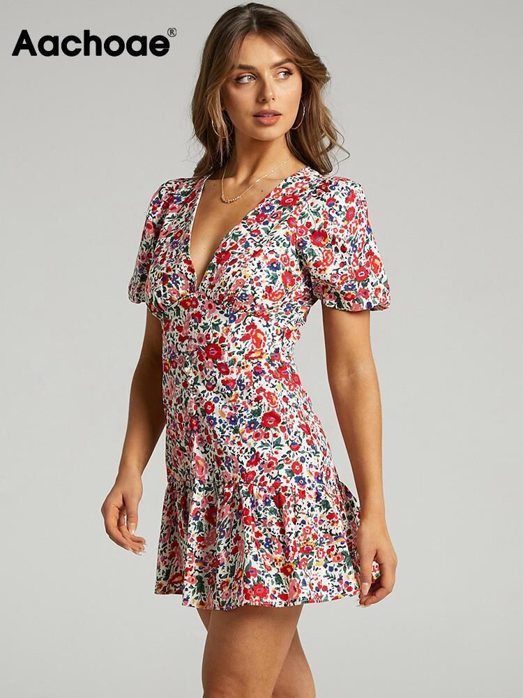 Aachoae 女性花柄プリントミニドレスセクシーな V ネック半袖 A ラインドレスホリデーパーティードレス Vestidos ショート ハーフスリーブ Vネック Aライン aac15177972765 | city&trip