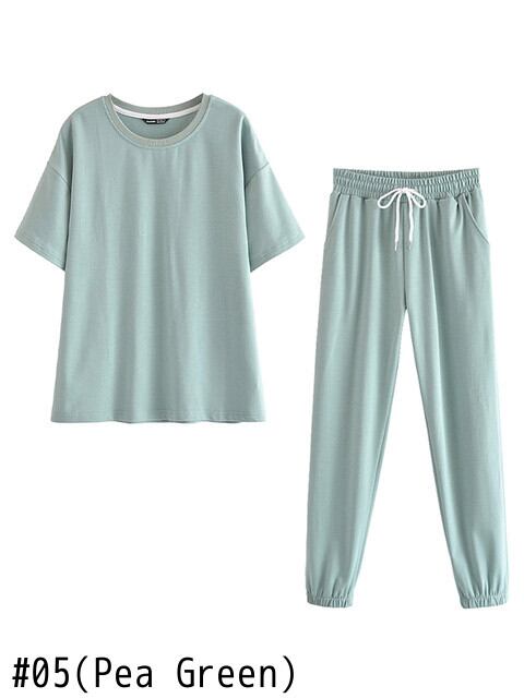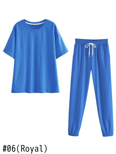 Aachoae 夏 2 点セット女性 O ネックバットウィングスリーブルーズベーシック Tシャツスポーツ全身ペンシルパンツレディースセット サマー 夏物 Oネック aac89116678861 | city&trip