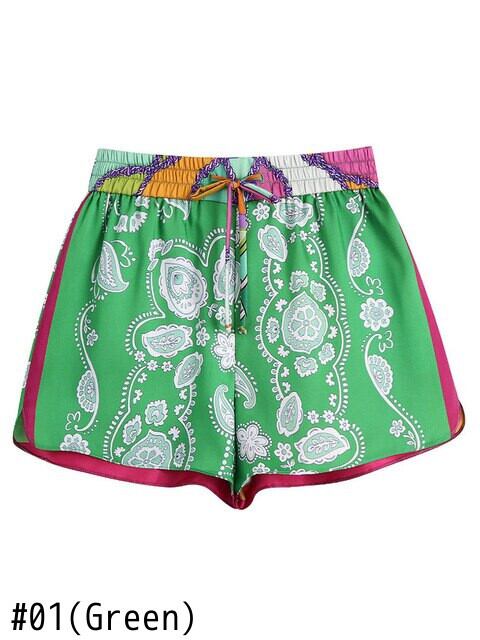 Aachoae レディース パッチワーク プリント ショーツ ウエストゴム サマーショーツ レディ シック ウエスト ボトムス エラスティック 伸縮 夏物 ブルマー aac45813455419 | city&trip