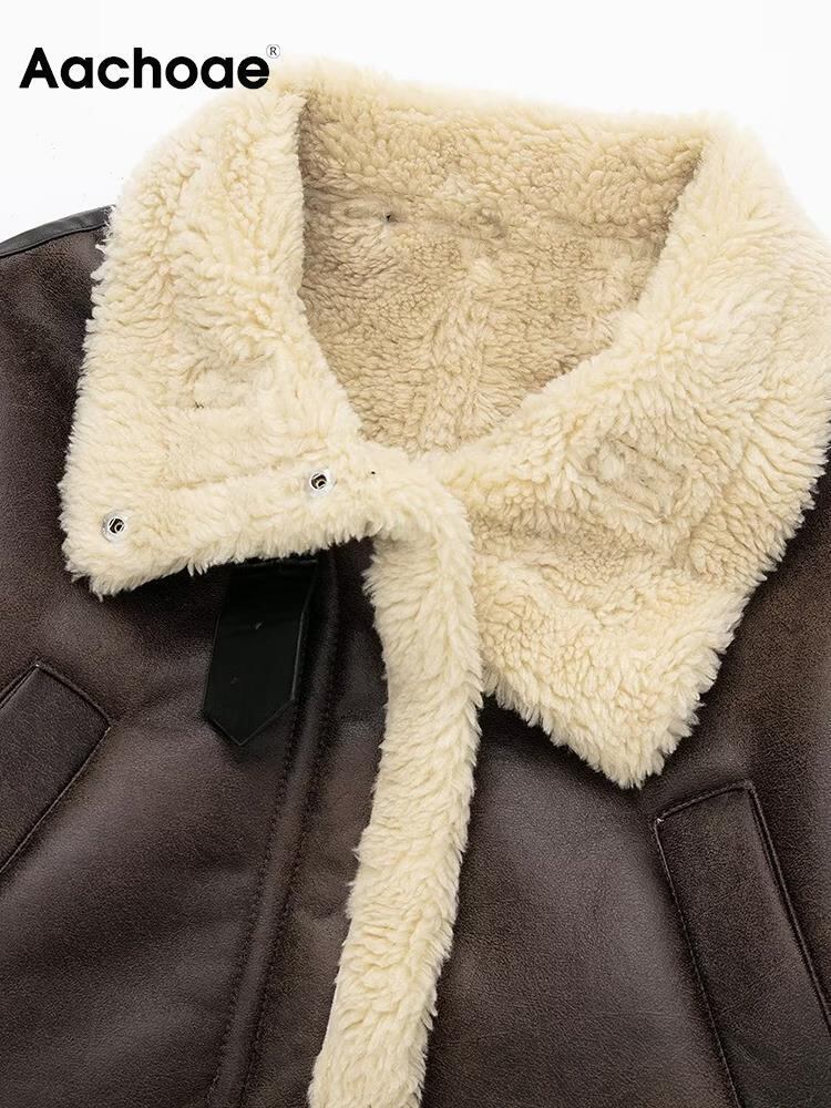 Aachoae 女性の基本的な暖かい毛皮のジャケット コート ターン ダウン襟長袖アウターウェア トップス無地アウター トップス ロング ソリッドカラー aac35164288981 | city&trip