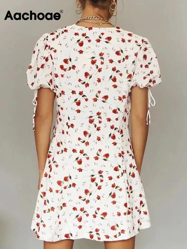 Aachoae 女性甘い花柄ミニ ドレス シックな V ネック パフ半袖ドレス A ライン ドレス Vestido ショート ハーフスリーブ 大人ガーリー スウィート キュート カジュアル Vネック Aライン aac1368062624 | city&trip