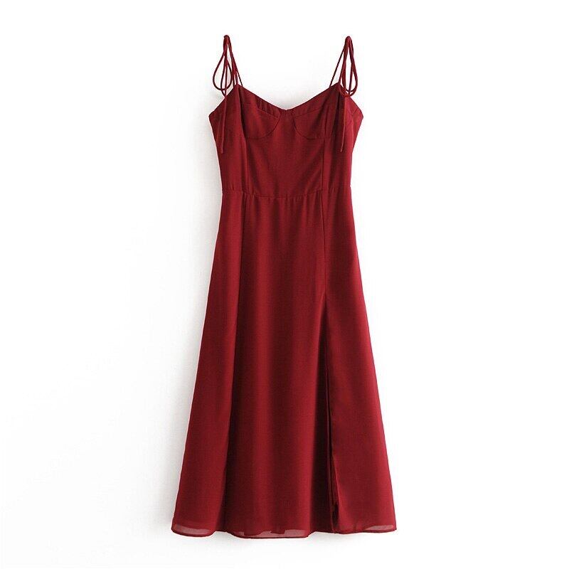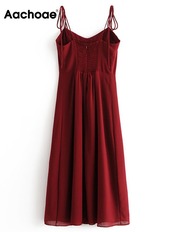 Aachoae 女性のセクシーなスパゲッティストラップスプリットドレスノースリーブバックレスパーティーミディドレス Ladeis A ラインシックなワインレッドドレス夏 サマー 夏物 Aライン aac97777693657 | city&trip