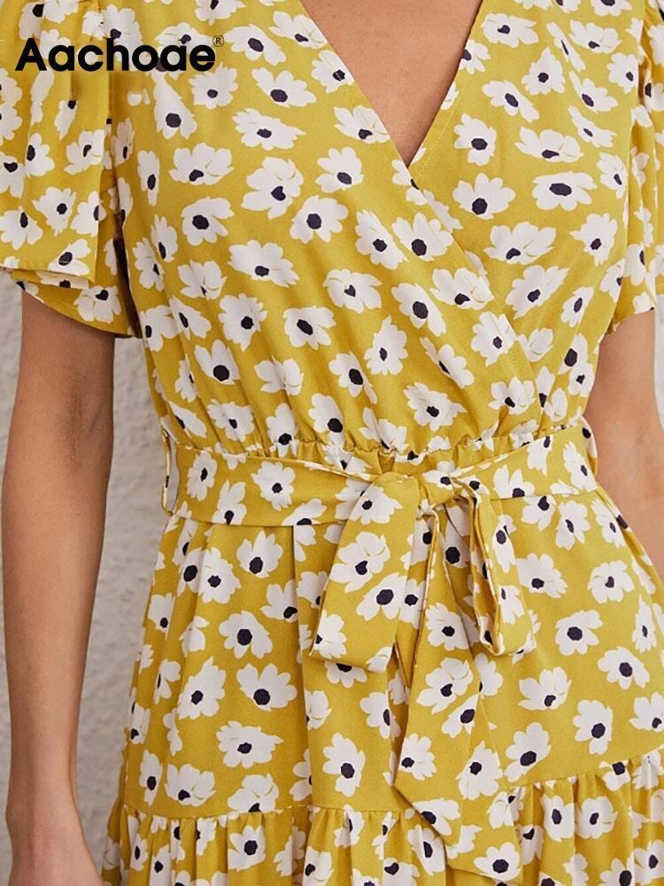 Aachoae 夏花柄プリントロングマキシドレス女性バタフライ半袖ドレスサッシ付き A ラインドレス ショート ハーフスリーブ サマー 夏物 Aライン aac39748113606 | city&trip